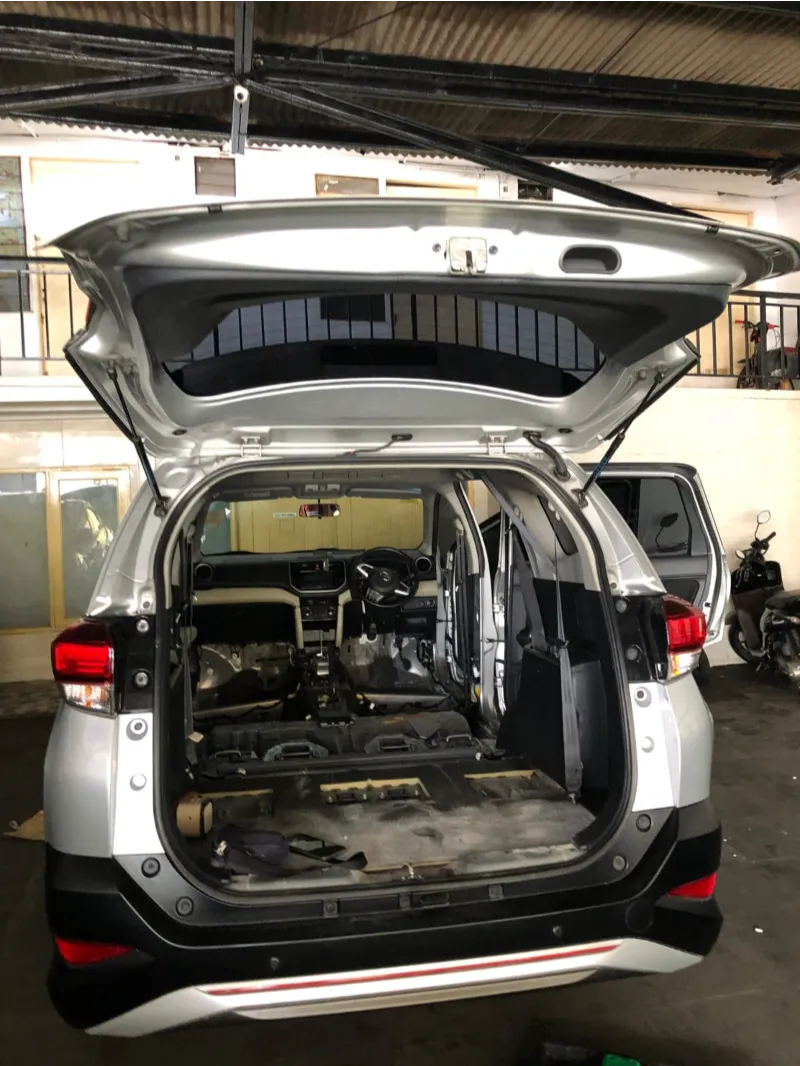 Membersihkan bagian interior secara detail seperti dashboard, karpet, panel, plafon dll